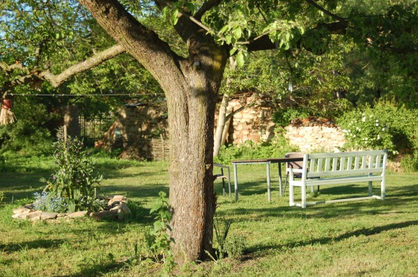 S jarem do zahrady přibyla lavička, natřená lazurovací barvou ...